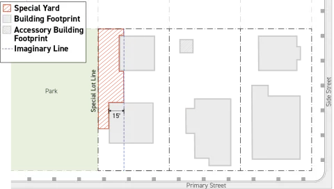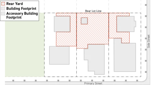 Yard: Yard is defined as all portions of a lot between exterior walls of a building and a property line. See Sec.14.2.16. (Yards).