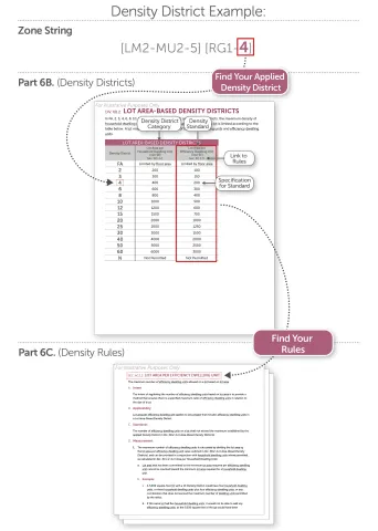 Density Districts standards are located in Part 6B. (Density Districts). Each Density District identifies the standards specific to that Density District.